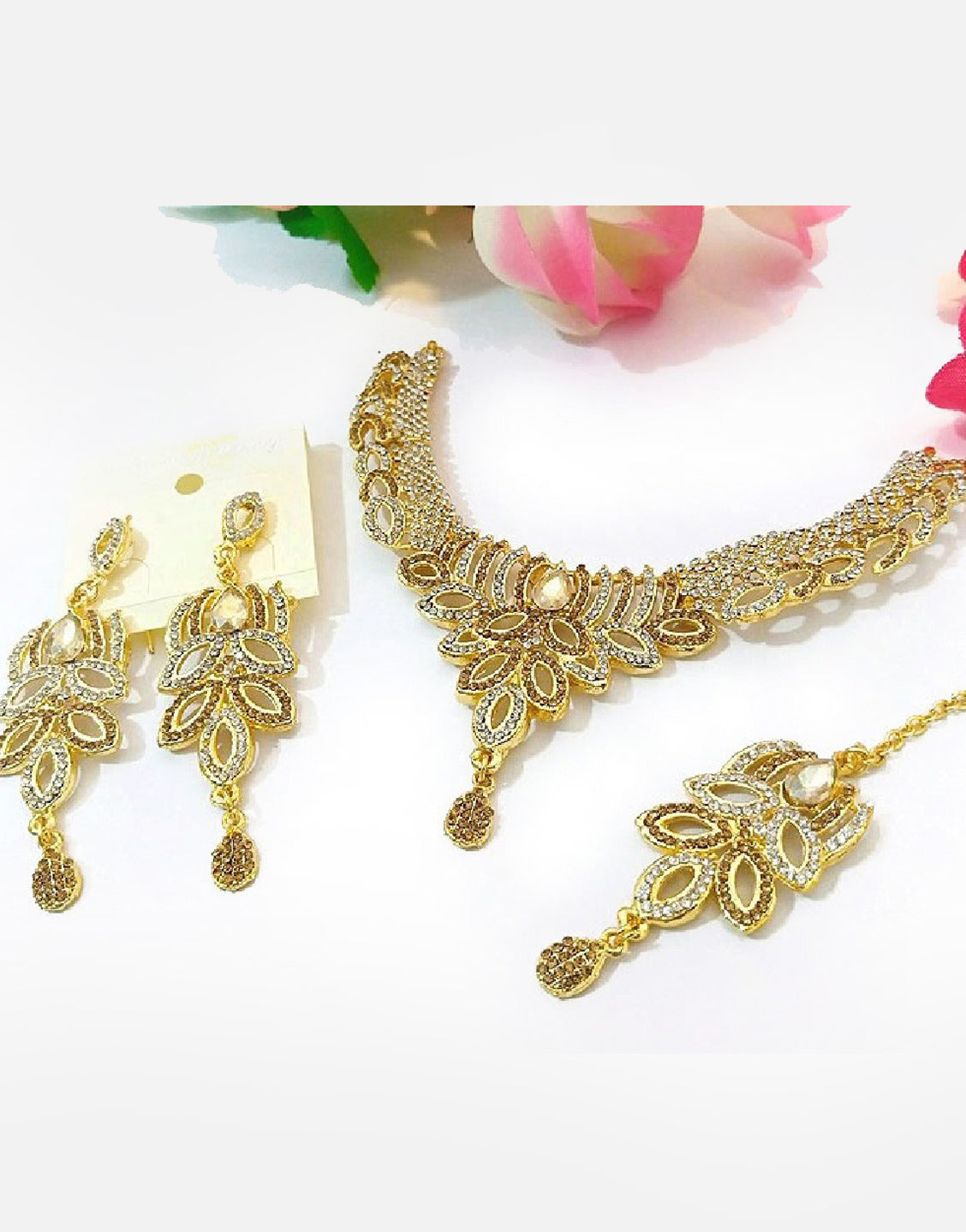 Adorable Party Wear Jewellery Set with Drop Earrings & Maang Tikka (TK14626)